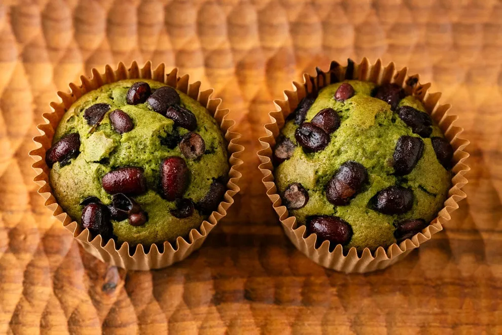抹茶マフィンは、能登大納言をたっぷりと使用し、蜂蜜を加えてしっとり感を引き出した逸品。抹茶のほろ苦さが豆の甘みを引き立て、和と洋の絶妙なハーモニーを生み出しています。一口食べると、心安らぐ味わいが広がります。