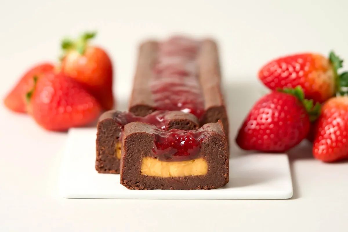 ガトーショコラの製作過程では、まず苺を粒の形を残すように丁寧に煮詰め、そのジャムを焼き込む・トッピングの2段階に分けて仕上げています。この工夫により、苺の香りが焼き上がりとともに、より鮮烈に感じられます。今年は特に、そのジャムの量を増やしたことで、苺本来のフレッシュな風味をさらに楽しむことができるのです。