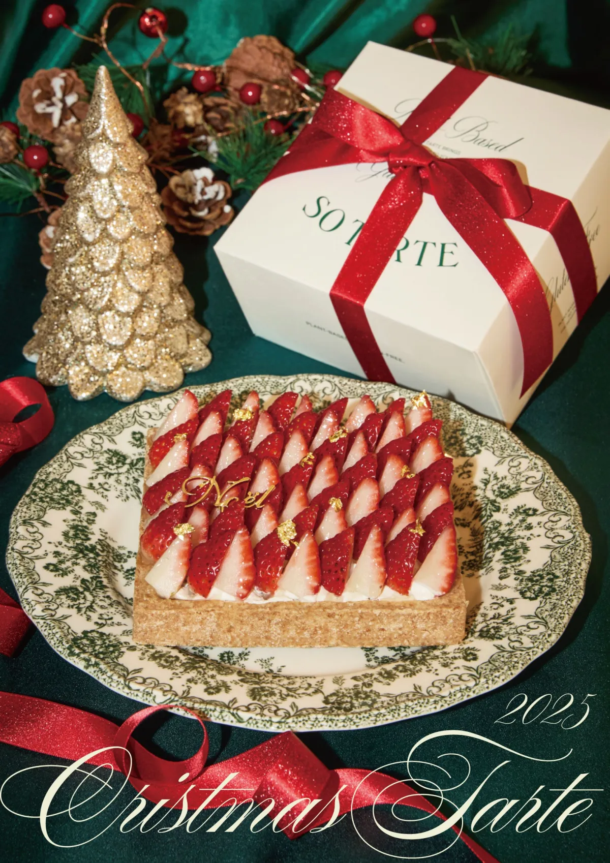 2025年11月17日から予約販売が始まる「SO TARTE」のスクエアボックスタルトは、クリスマスシーズンを彩る特別なスイーツ。ヴィーガン&グルテンフリーの素材を使用し、見た目も華やかで美しいタルトは、贈る喜びと自分へのご褒美を満たしてくれます。タルトのサイズは15cmで、4名から9名まで楽しめる少し大きめな仕上がり。クリスマスの特別感を感じられる一品です。