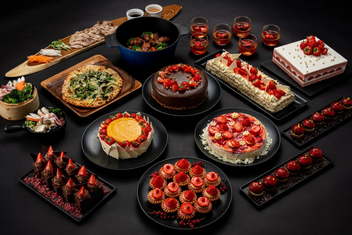 このスイーツビュッフェでは、甘酸っぱい苺を使ったお菓子が20種類以上。シグネチャーデザートとして「ザッハトルテ」や、レモンと苺のフレーバーが絶妙な「苺とレモンチョコのレアチーズケーキ」など、見た目にも美しいスイーツが盛りだくさんです。さらに、オープンキッチンでは自分好みの食材を選んでできたてを楽しむことができる「せいろ蒸し」や、寒い季節に打ってつけの「あったか小鍋」も用意されています。