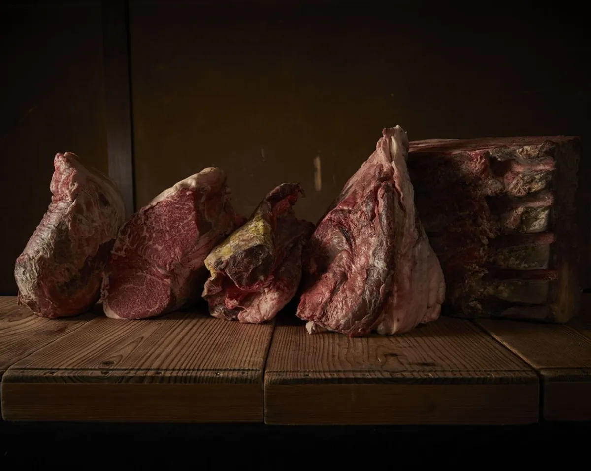 熟成には特製の自然対流式熟成庫を使用し、50〜80日間、温度・湿度・風を徹底管理して行います。この厳密なプロセスにより、肉の水分が適切に馴染み、アミノ酸や核酸といった旨味成分が肉の中に閉じ込められ、口の中で豊かな風味が広がります。肉が持つ本来の香りが際立ち、筋組織がゆっくりと分解されることで、鮮やかな後味と気持ちの良い歯ごたえを実現。まさに、噛むごとに牛肉の深い味わいと香りが楽しめる至福の時間を提供します。