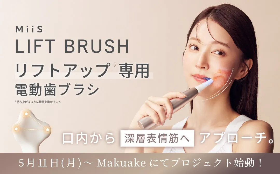 オーラルケアの新たな一歩を踏み出す「MiiS(ミーズ)」が、5月11日(月)から「Makuake」で販売を開始する電動歯ブラシ『MiiS LIFT BRUSH(ミーズ リフト ブラシ)』。この製品は、口腔内のケアを通じて、表情筋にアプローチするという新発想のアイテムです。これまでの美容ケアとは一線を画すその意義を、さまざまな角度から解説します。