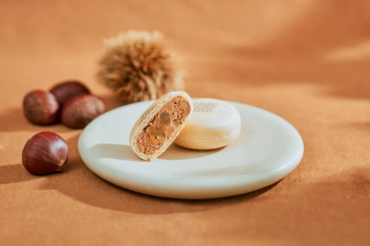 カカオハナレは、素材の良さを最大限に引き出すことで知られるブランド。その看板商品である「ハナレモナカ」は、全国各地から高い評価を受けており、特に今年は新作の和栗を基にしたスイーツが登場します。今秋の新作には、まず「ハナレのわらび餅」がラインアップ。しっかりとした対して柔らかな口どけのわらび餅に、波照間島産の黒糖蜜が贅沢にかけられており、甘さと香ばしさが絶妙に調和しています。