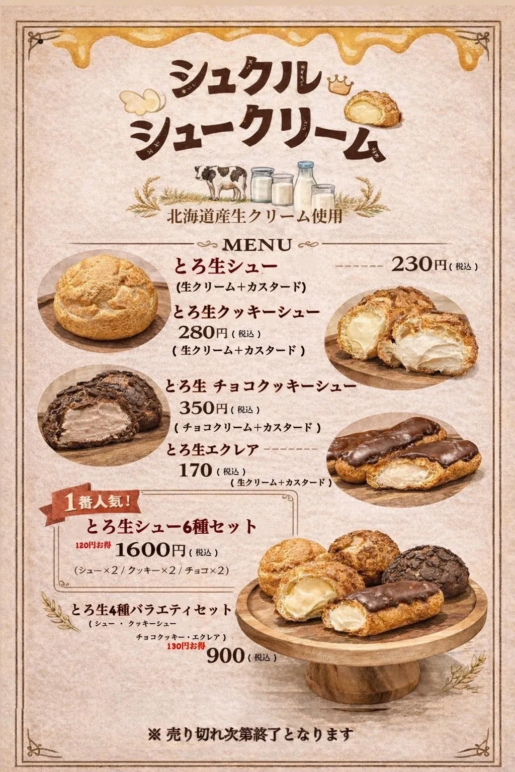 - - とろ生クッキーシュー:280円(北海道産生クリーム+カスタード)