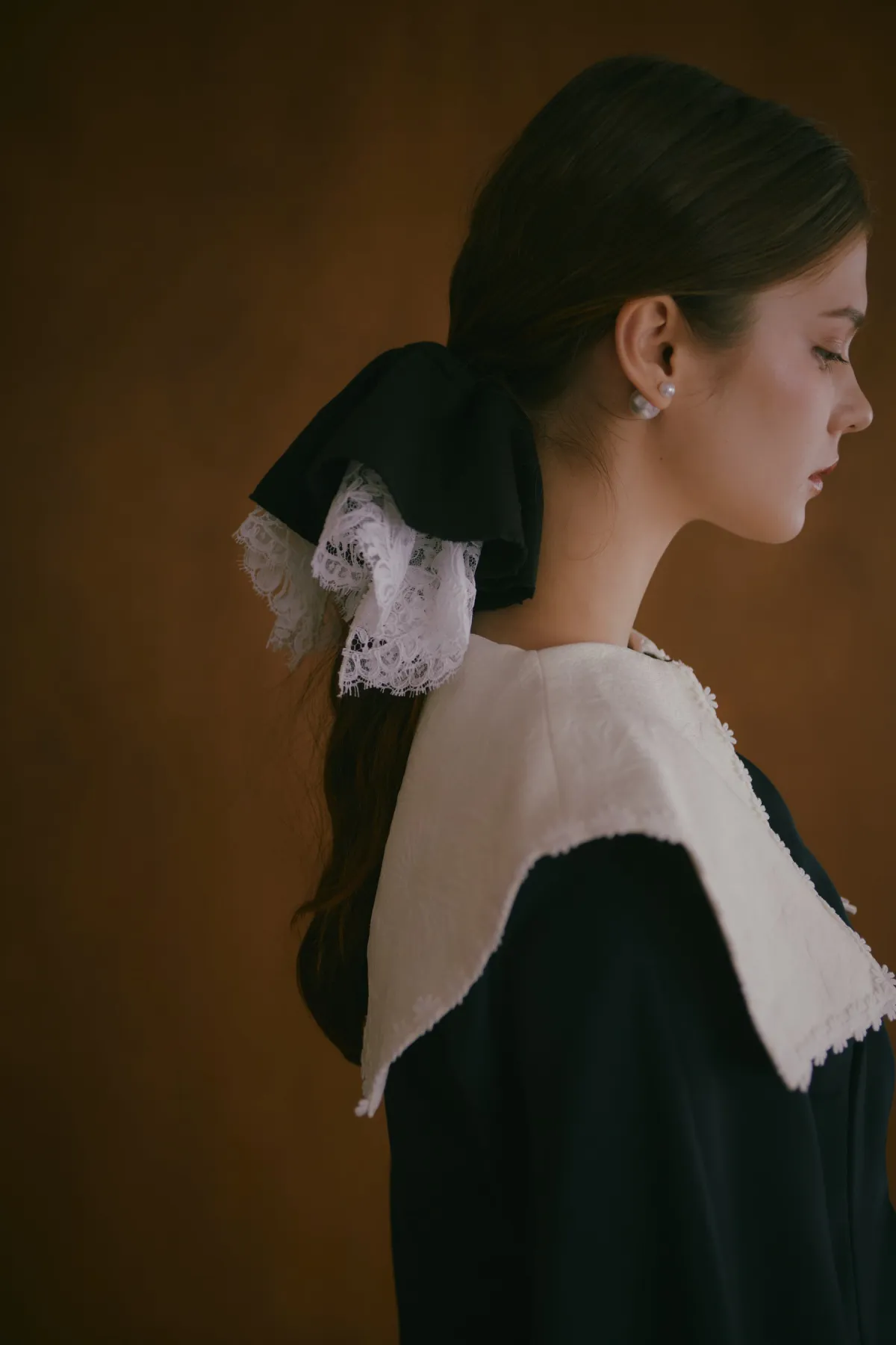 この「シュシュ&巾着セット」は、2つの異なるデザインから構成されています。どちらも上質なレース素材を使用しており、普段使いできるアイテムとしてデザインされています。