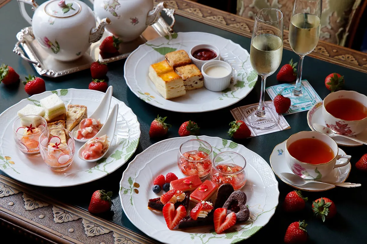 アフタヌーンティーは、英国式の三段ティースタンドでサーブされ、目にも楽しい演出が施されています。一段目はスイーツが並び、二段目には口当たりの良いセイボリーが配置されています。苺とチョコレートの絶妙なコンビネーションを存分に堪能できるメニューが用意されています。