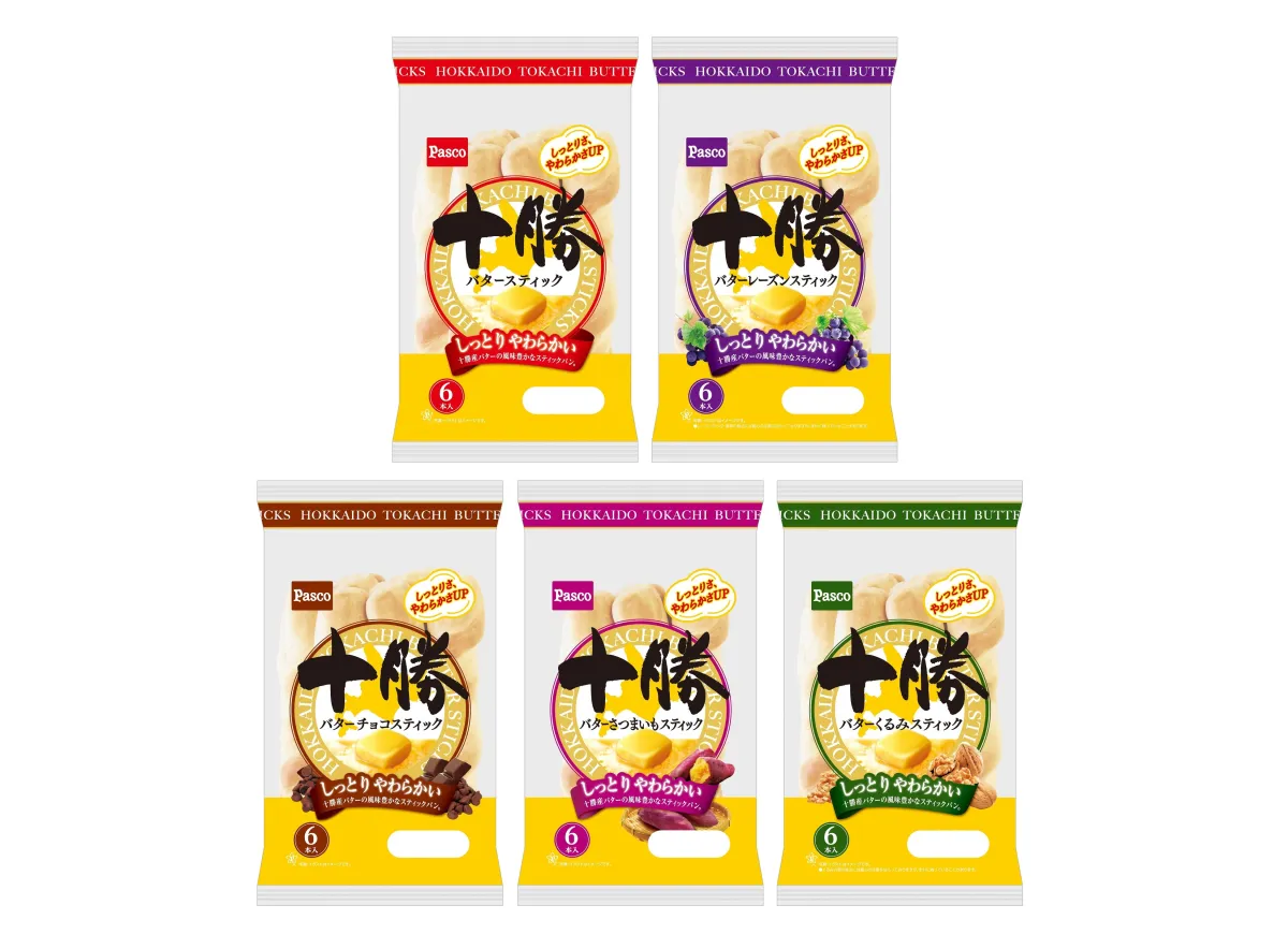 リニューアル後の「十勝バタースティック」では、これまでのしっとり感ややわらかさをさらにアップさせ、より長持ちする食感を目指しました。バターの風味はそのままに、より多くのお客様に満足して頂けるよう工夫が施されています。