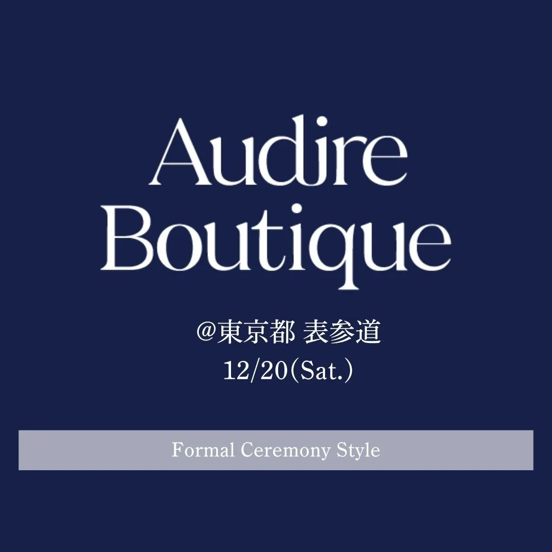 2023年12月20日(土)、Audire(アウディーレ)が初めてのフォーマルシーンに特化した試着会「Audire Boutique」を開催します。会場では、ロングセラーアイテムや来春に発売される新作セレモニー向けアイテムをいち早く体験いただけます。これからの春は、入卒式や結婚式、会食など、様々なフォーマルなシーンが増える季節です。特別な瞬間を素敵に演出するアイテムを見つけるチャンスです。