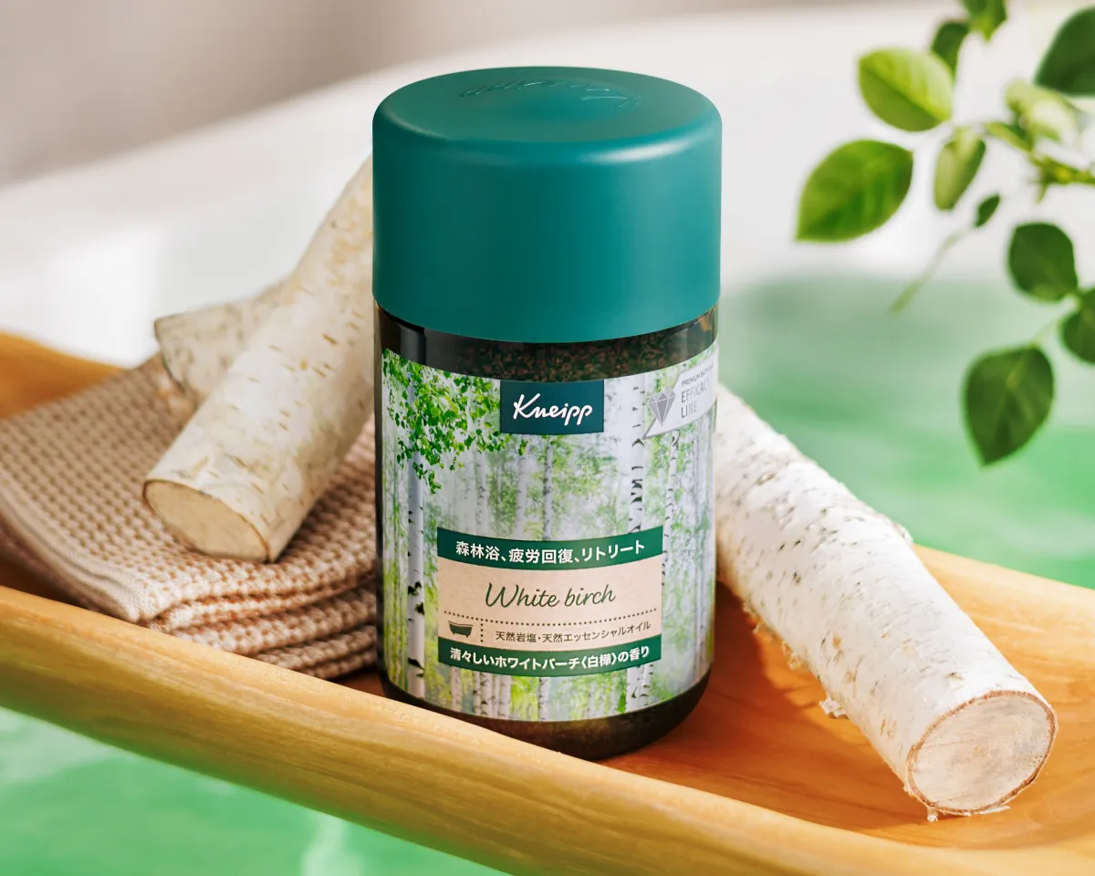 「クナイプ バスソルト ホワイトバーチ」は、白樺エキスとパインの天然エッセンシャルオイルを使用しています。この製品がもたらす清々しい白樺の香りは、まるで森林の中で深呼吸しているような解放感を与え、疲れた筋肉を和らげます。また、パインに含まれる「フィトンチッド」は、心身のリフレッシュを促し、森林浴の効果を自宅で体験できるでしょう。