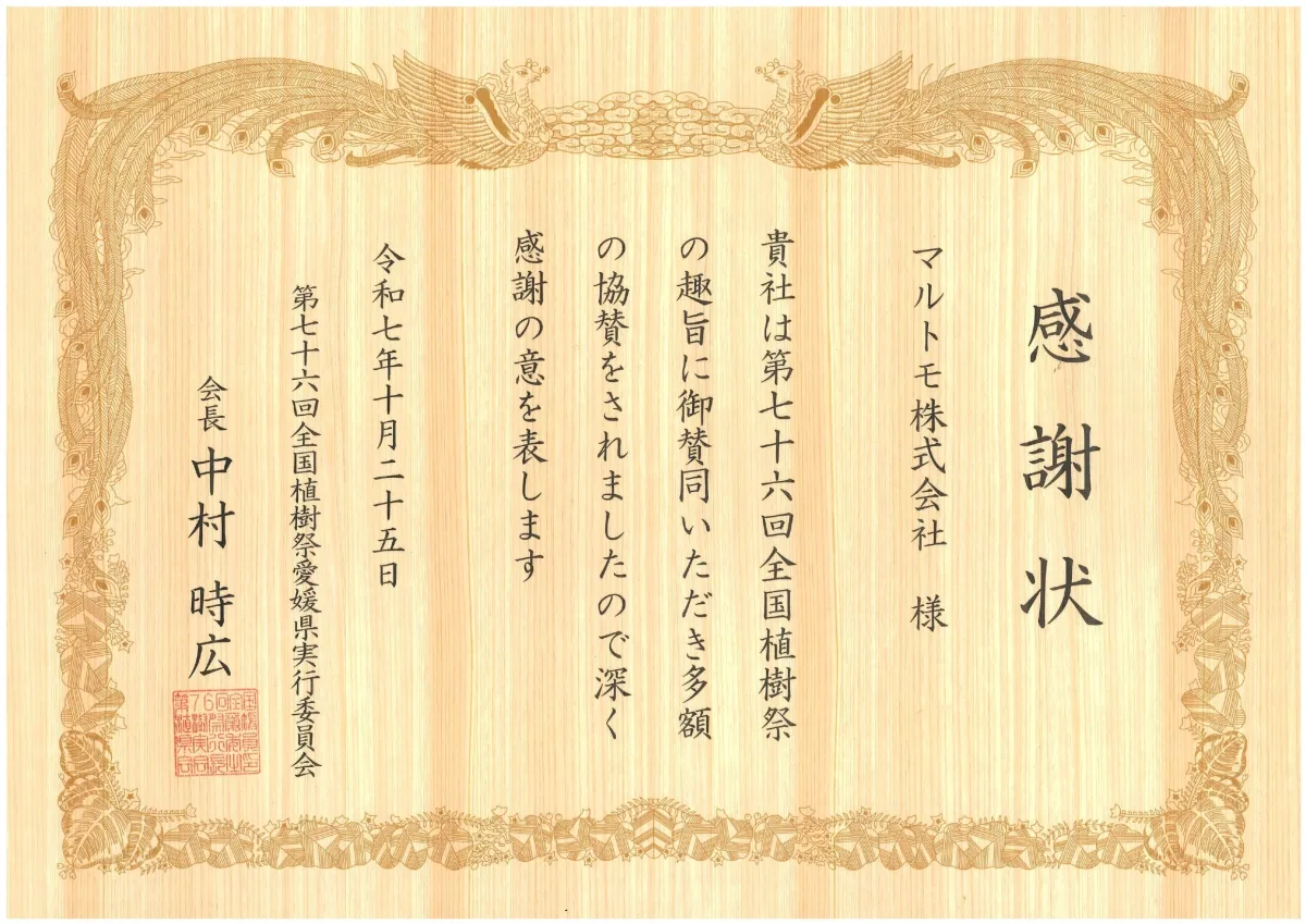 マルトモが「第76回全国植樹祭えひめ2026」に協賛