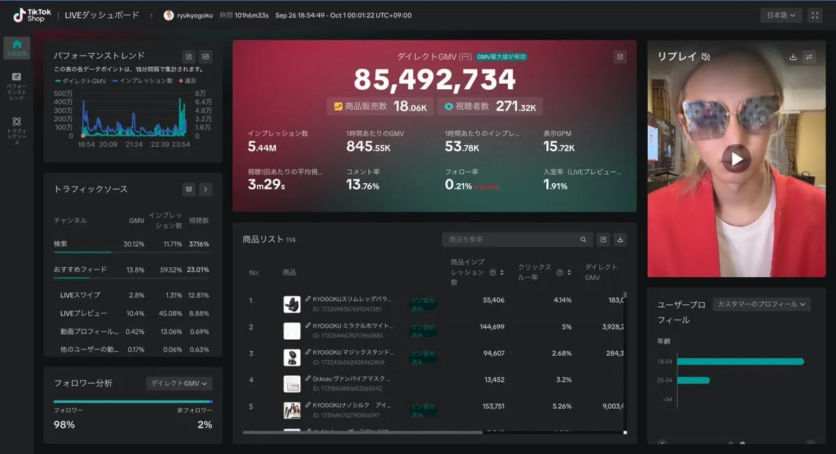 中国発のスキンケアブランド、FUNNY ELVESとのライブ配信でも、京極琉は約150万円の売上を上げることに成功しました。この配信は特に日本市場における越境成功モデルとして注目されています。双方向のコミュニケーションを駆使しながら、商品の魅力を効果的に伝えることで緊密な購買転換を実現しています。