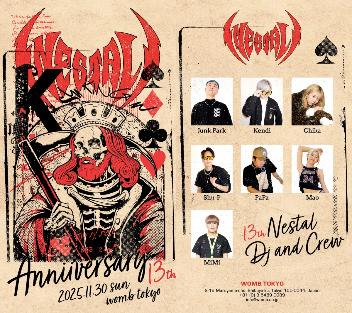 K-POPイベント「NESTAL」が、2025年11月30日(日)に東京・渋谷のWOMBで13周年を祝う特別なパーティーを開催します。このイベントは、アジアのK-POPクラブカルチャーをリードしてきた「NESTAL」によるもの。テーマは「KING」で、トランプの数字13が意味するように、これまでの歴史と進化を象徴する内容に仕上げられています。