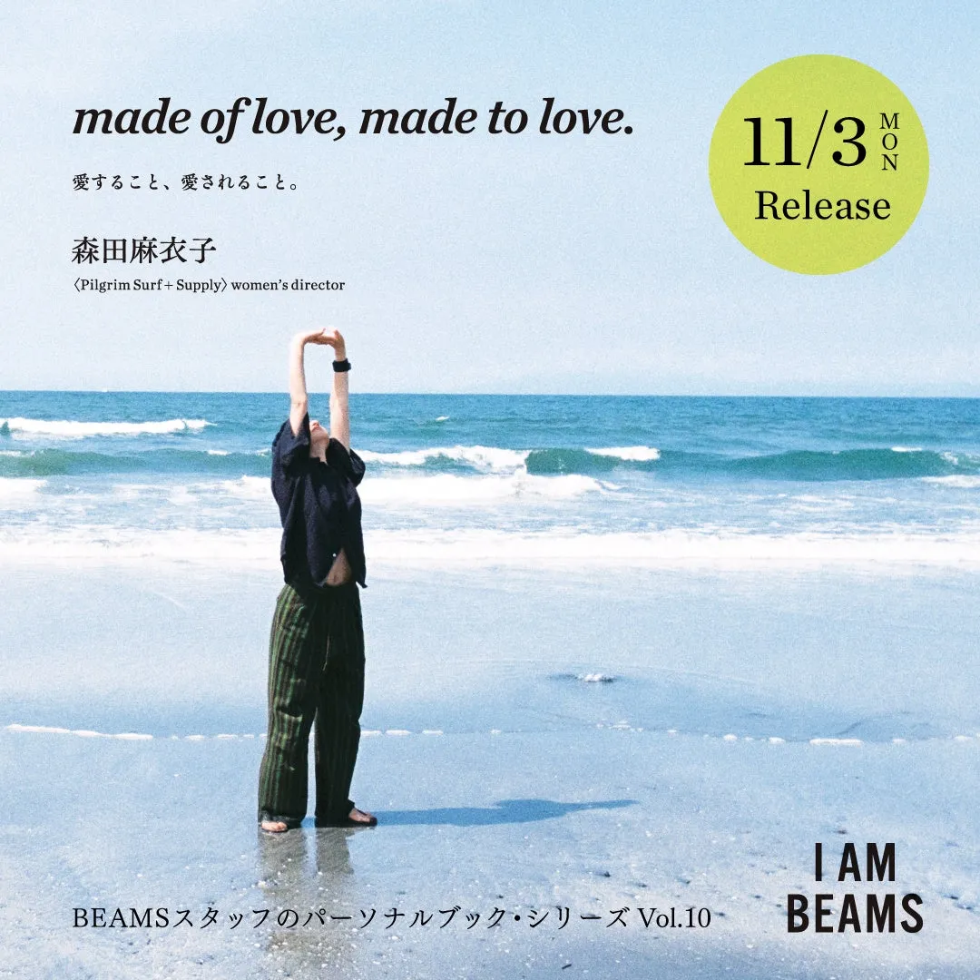 2025年11月3日(月・祝)、ビームスのパーソナルブックシリーズ『I AM BEAMS』の第10弾として、〈Pilgrim Surf+Supply〉のウィメンズディレクターである森田麻衣子の書籍『made of love, made to love. 愛すること、愛されること。』が発売されます。ファッションやライフスタイルに高いこだわりをもつ彼女の魅力が濃縮された一冊です。