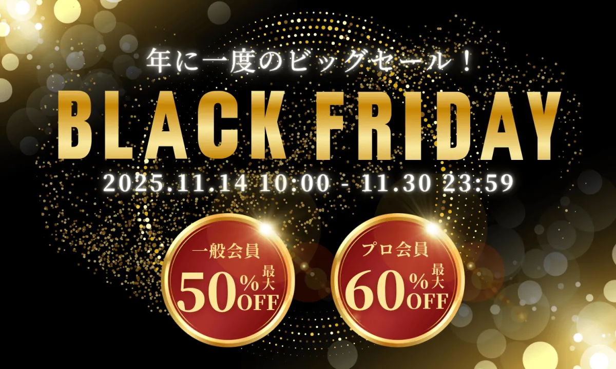今年のブラックフライデーセールは、一般会員とプロ会員に分かれた特別割引が用意されています。一般会員は30%~50%OFF、プロ会員に至っては最大60%OFFで商品をゲットできる嬉しいチャンスです!