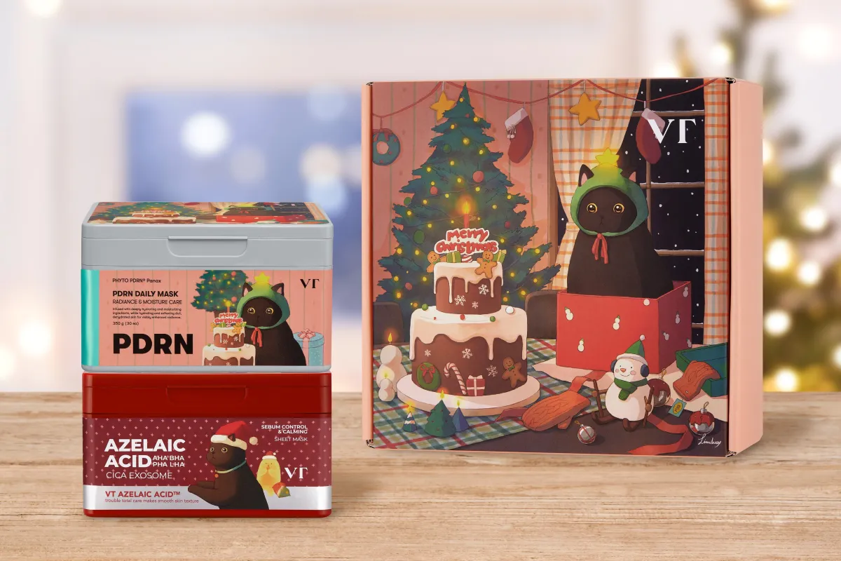 さらに今回は、人気イラストレーターのイムデュイさんとのコラボにより、ホリデーデザインの限定商品も展開!可愛い猫の絵が施されたパッケージはギフトにもぴったりです。赤いボックスのAZケアマスクと合わせて使用すれば、心も華やかに。気分も冬のホリデーモードに引き込まれます。