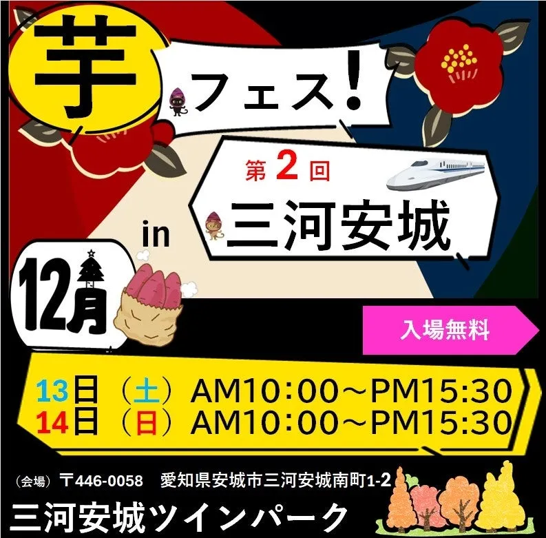 昨年の大成功を経て、2025年12月13日と14日の二日間にわたって「第2回芋フェス!IN三河安城」が開催されることが決定しました。場所は、安城市の三河安城駅前・ツインパーク公園で、両日ともに午前10時から午後3時30分まで楽しむことができます。このイベントは、さつまいも好きにはたまらない、焼き芋や芋スイーツが大集合する場となります。