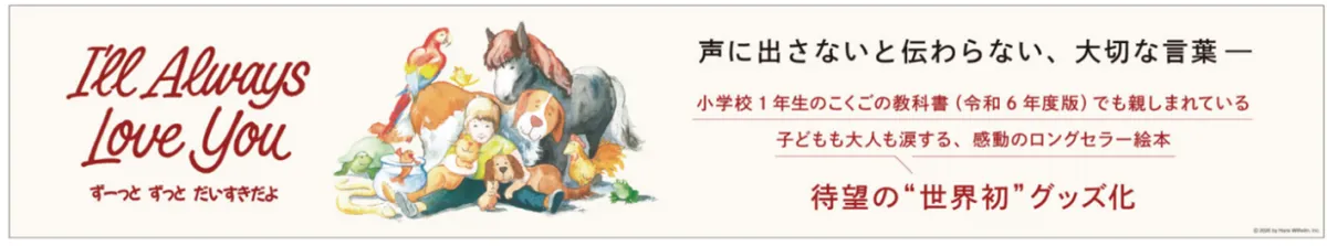 「えほん+えほん」とカルチュア・エクスペリエンス株式会社が手を組み、愛され続ける絵本『ずーっとずっとだいすきだよ』をテーマにした新たな商品が発売されます。2026年2月1日から順次販売が開始されるこのオリジナルグッズは、世界初の試みとなります。