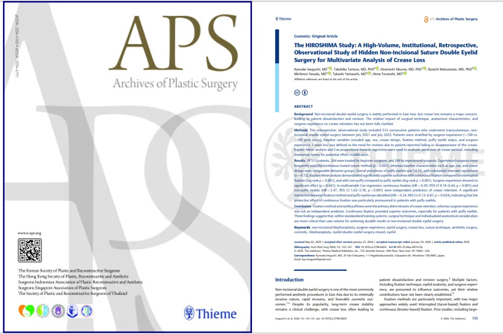 美容外科における二重埋没法は、かつてない人気を誇る施術ですが、患者が最も懸念するポイントの一つに術後の重瞼線消失が挙げられます。これに関して、日本全国に102院を展開するTCB東京中央美容外科の井口京介医師が行った大規模な研究が、国際学術誌「Archives of Plastic Surgery」に掲載されたことで、ますます注目を集めています。