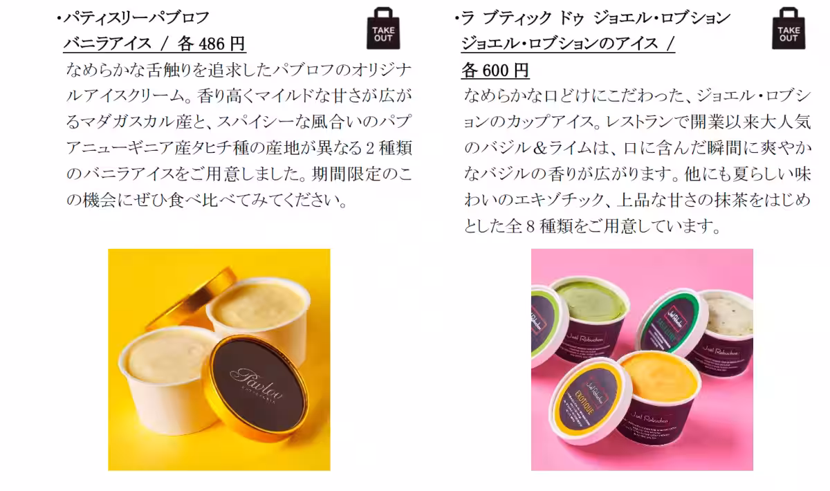 ラトリエ ドゥ ジョエル・ロブションが展開する「グラス ピレ マンゴー」も見逃せません。こちらはスポットライトを浴びるかき氷として、ジョエル・ロブションによる世界初の試みです。さらに、ヒルズ ダル・マットからは、手作りのブリオッシュにイタリアンジェラートとクリームをたっぷり挟んだ「ふわふわジェラトッツォ」が登場。