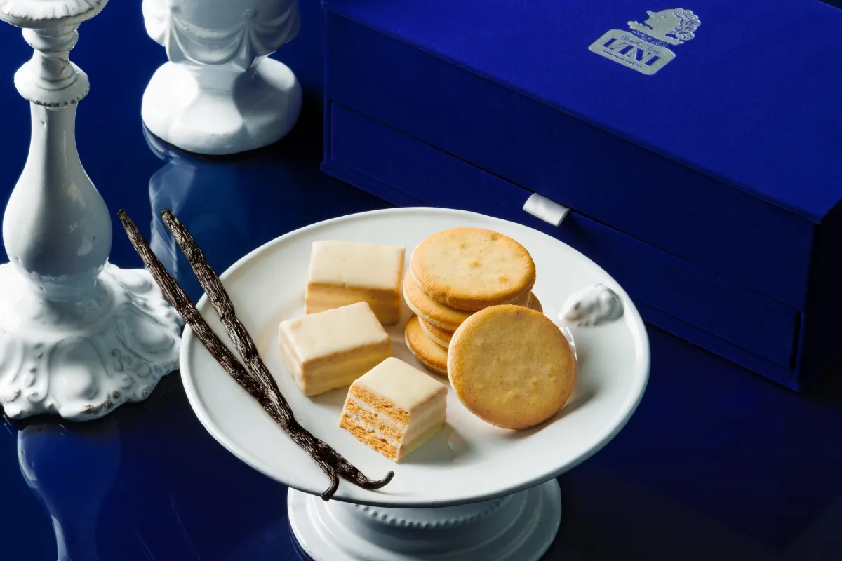 このギフトボックスには、バニラ香る薄いクッキーでチョコレートをサンドした「サンドクッキー」や、サクサクのパイ生地にクリーミーなバニラを重ねた「ミルフィユ」が含まれています。バニラの魅力が詰まった二つのスイーツが織り成す甘美なハーモニーは、日々の疲れを癒してくれることでしょう。
