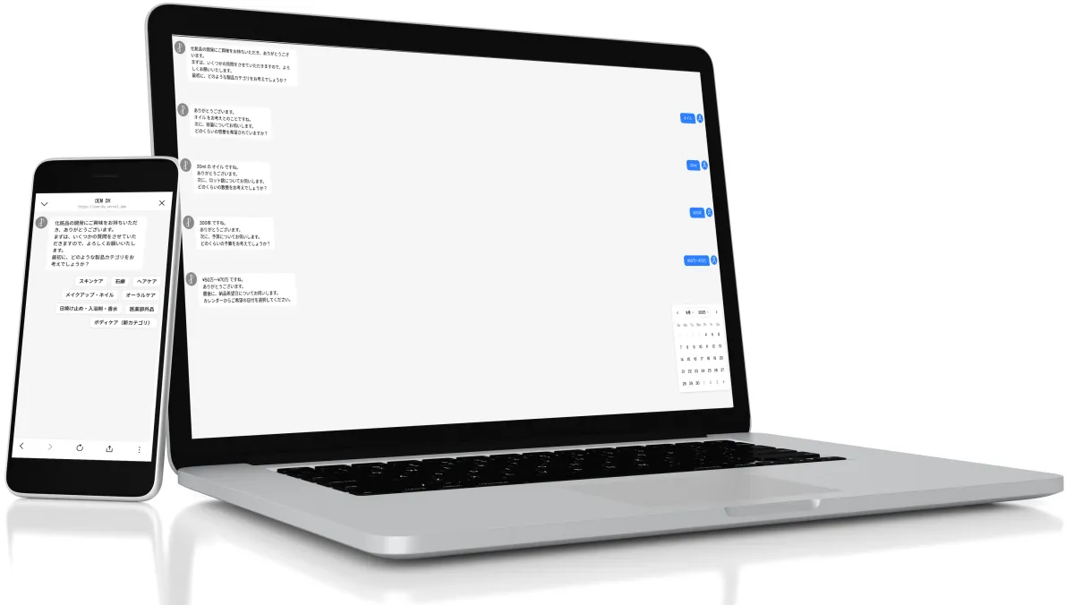 「小さく始めて、大きく育てる」をテーマにしたOEMDXは、最小ロット100本からの開発に対応しています。初期投資を抑えながら、実践的なOEM事業が立ち上げられ、将来的にも自社内で受託・OEM化の基盤を形成していくことが可能です。