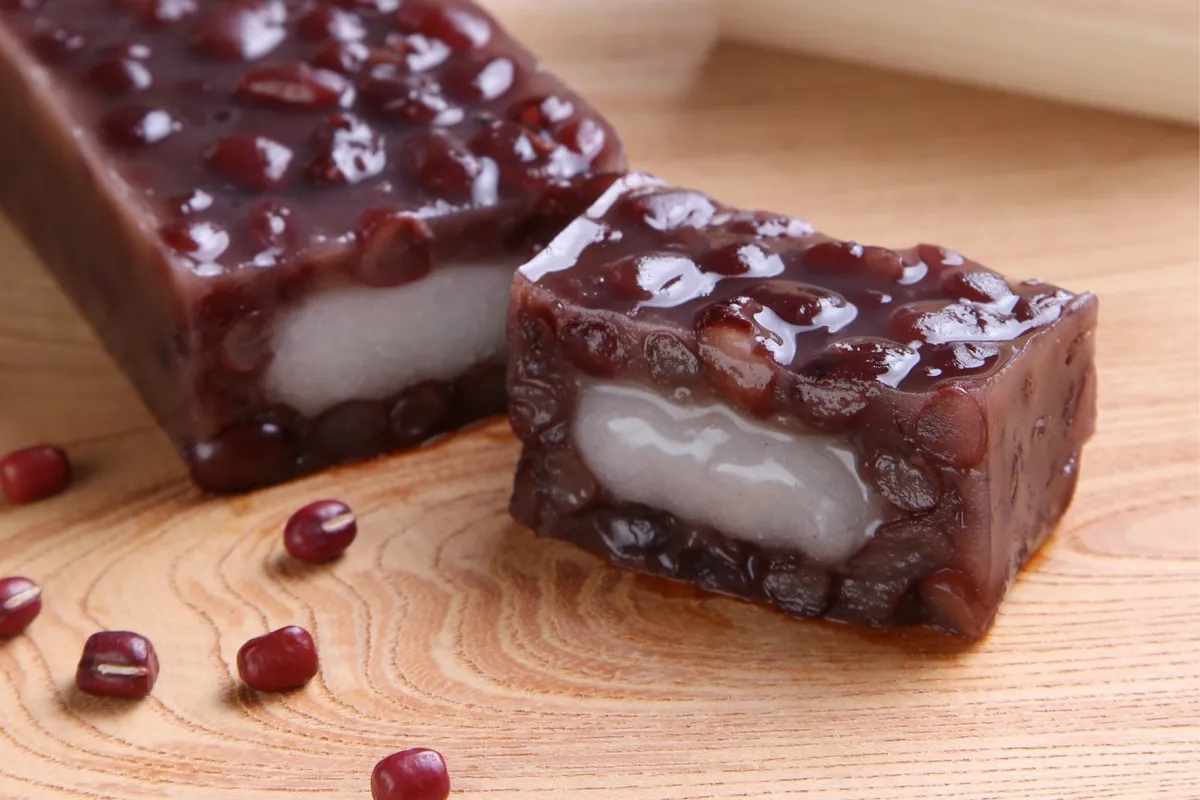 「あも」は1971年に誕生した、ふっくらしたつぶ餡とやわらかな羽二重餅のコンビネーションが絶妙な上品な棹菓子です。京の女官たちにちなんで名づけられたこの和菓子は、特に珍しい「丹波大納言小豆」を使用しており、その手間暇かけた製法から生み出されるつややかな餡は、多くのお客さんに喜ばれています。