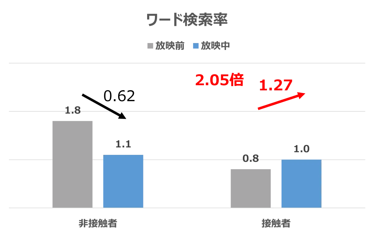 何故このような結果が得られたのでしょうか。広告接触により、商品の興味や関心がさらに増加したことが考えられます。これにより、消費者は具体的なアクションを起こしやすくなるのです。