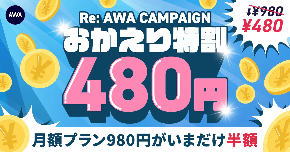 音楽ストリーミングサービス「AWA」が、特別価格での再登録キャンペーン「RE:AWA CAMPAIGN おかえり特割」を開催します。このキャンペーンは、2025年10月21日(火)から10月31日(金)までの期間限定で、過去にAWA STANDARDプランに登録していた方を対象にしたお得なサービスです。月額980円のプランが、なんと480円で利用できるチャンスです!