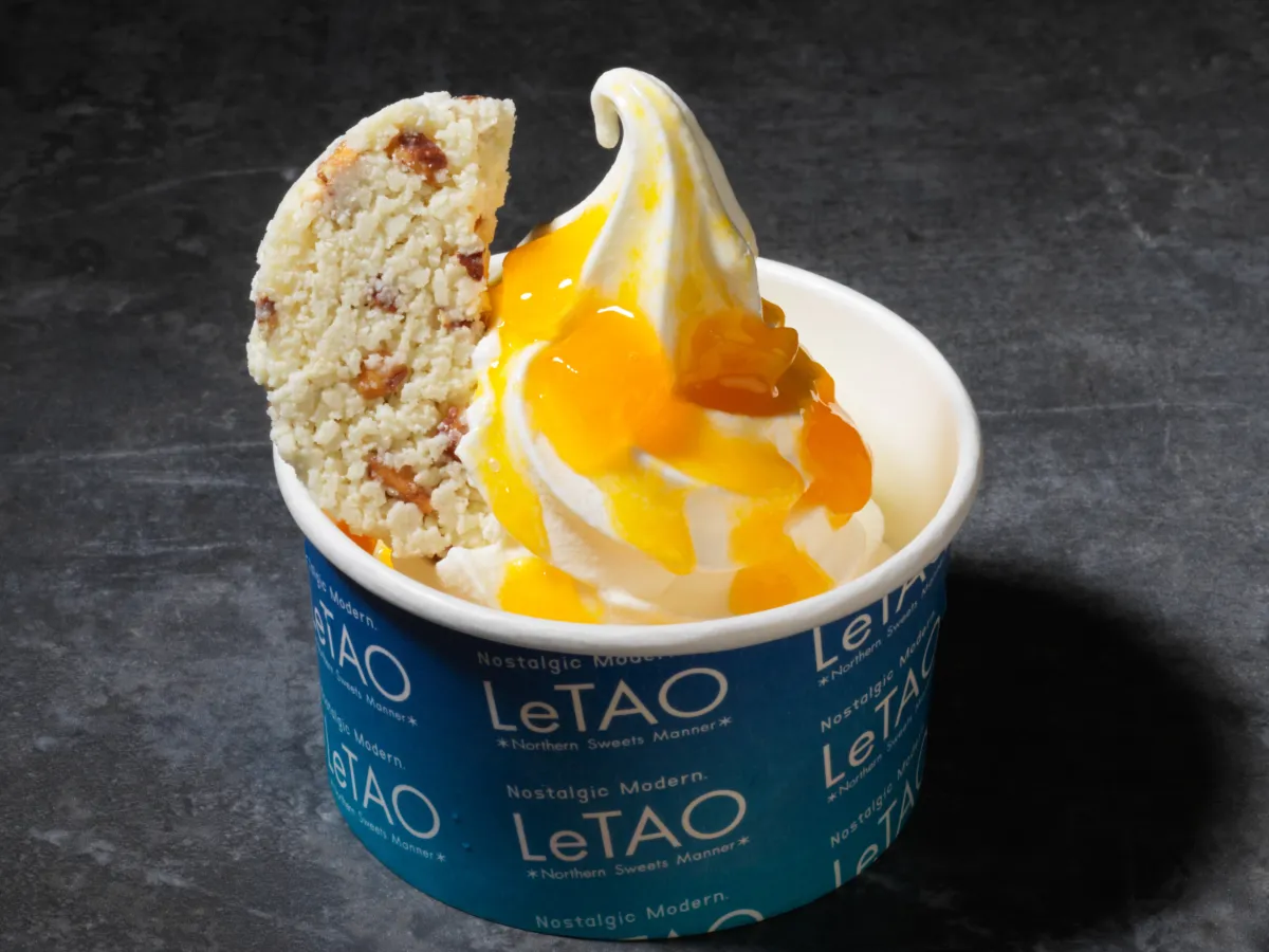 「シメグラッセ」は、サクサクのフィアンティーヌの上に、ミルキーで濃厚なジャージーミルクソフトを絞っています。その上には、香り豊かな赤肉メロンのソースがトッピングされ、濃厚なミルクの甘さと、メロンの芳醇な香りが見事に調和。食後や旅の締めくくりに、北海道の味を存分に楽しむことができます。