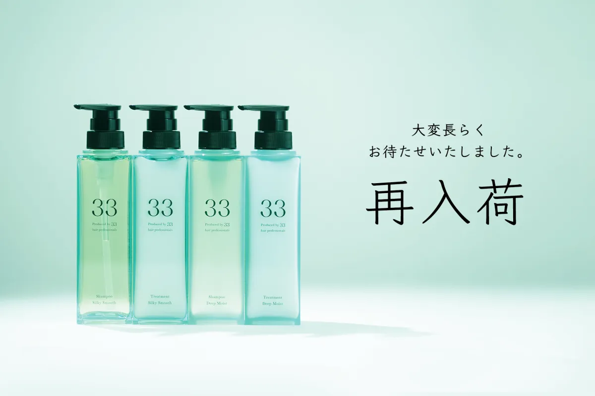 髪の専門家が集結し開発した『33(サーティスリー)』のシャンプーとトリートメントが、欠品からついに再入荷しました!この商品は、33人の髪の専門家が本気で考え抜いて誕生したもので、日々多くのお客様の髪と頭皮に向き合う専門家たちの想いが詰まっています。ファッションやビューティーに敏感な女性たちにとって、安心して使用できるアイテムとして非常に注目を集めています。