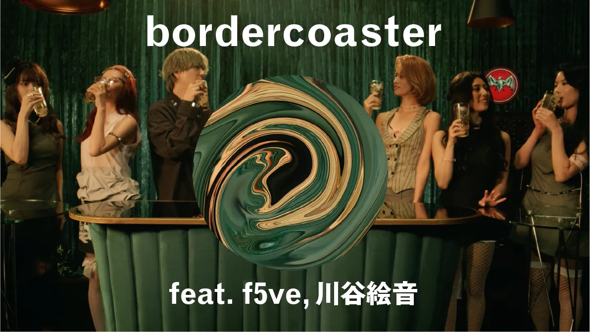今回公開される「bordercoaster」のミュージックビデオには、F5veと川谷絵音の二人が出演。さまざまな衣装を身にまとった二人が、エキサイティングな演出で境界線を駆け抜けていく様子が描かれています。映像はまるでジェットコースターに乗っているかのような疾走感に満ちています。