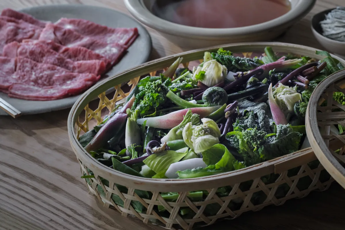 この季節限定の鍋は、春と共に芽吹く山菜の魅力を引き出した一品です。特製だしにサッと山菜をくぐらせることで、香りとほろ苦さが引き立てられます。上質な牛サーロインをしゃぶしゃぶのように合わせ、春の滋味と肉の旨みが絶妙に馴染んでいます。締めには桑麺が用意されており、春の余韻が最後の一口まで楽しめる設計です。門出を迎える特別な夜や大切な人を招いての春の集いにぴったりの一鍋です。