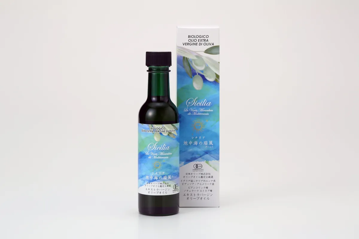 「地中海の瑞風」は、シチリア州のエンナ県で生産されたオリーブオイルで、ビアンコリッラ種とノチェラーラ・エトネア種の2種類のオリーブが50%ずつブレンドされています。このブレンドによって生まれるバランスの良い風味が特徴で、料理を華やかに引き立てます。