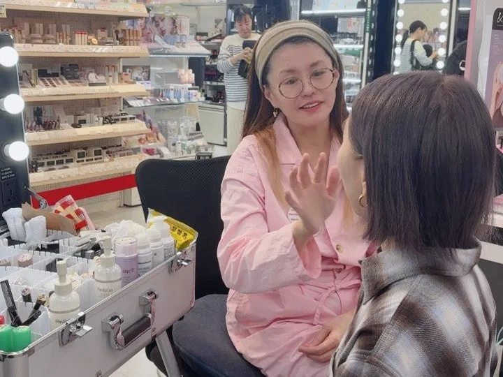 これらの店舗において、実際に肌づくりや骨格を美しく見せるためのメイク技術を習得しました。デモンストレーションでは、参加者が直接タッチアップを受け、それぞれの個性を引き出すポイントをしっかりと学びました。