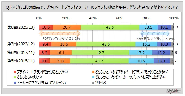 この調査は、マイボイスコム株式会社によるもので、2025年10月1日から7日の間にインターネットで実施されました。対象者は11,196名に及び、プライベートブランドの購入状況や意向について徹底的に分析しました。