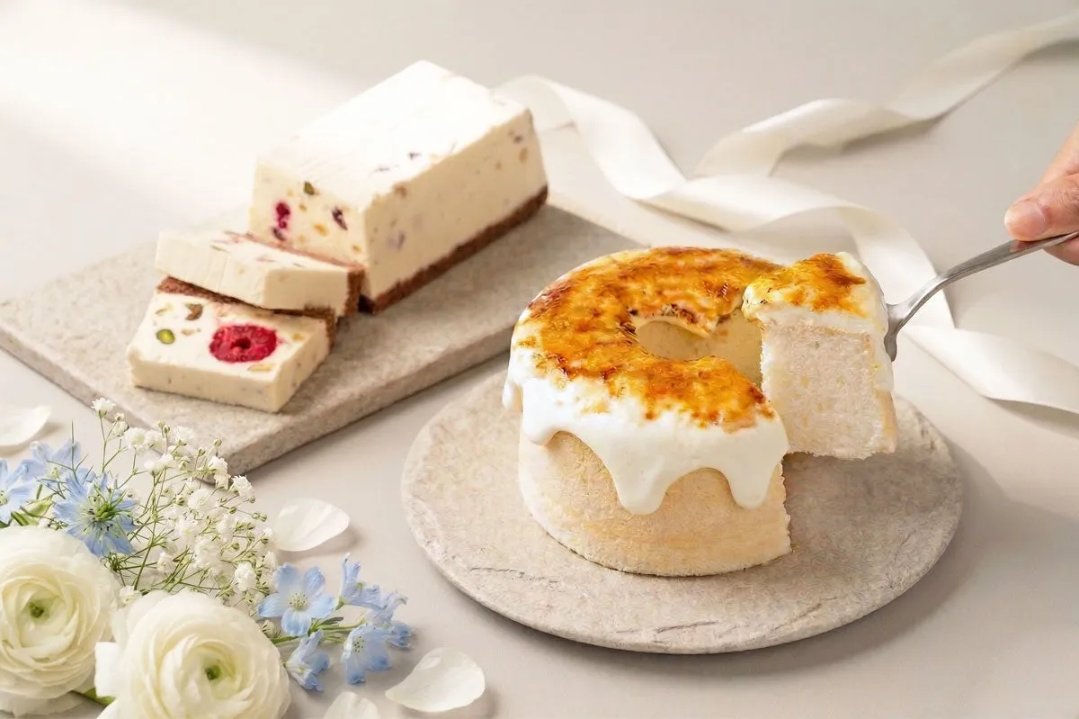 このシフォンケーキは、キャラメリゼされた表面のほろ苦さと、ふんわりとした生地にとろけるクリームが絶妙に調和した一品。しっとりとした食感に、パリッとした食感のブリュレがアクセント。五感を楽しませるシフォンケーキで、特別なデザートタイムを演出します。