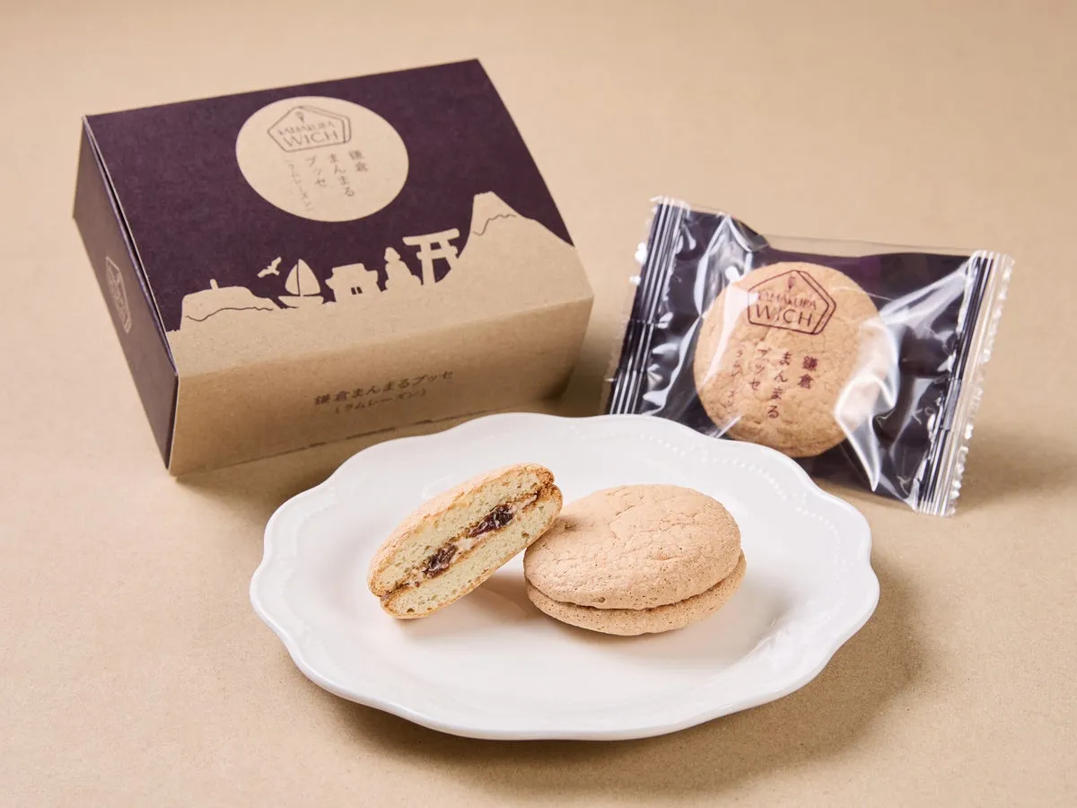 「鎌倉まんまるブッセ」は、厳選されたアーモンドパウダーをふんだんに使用しており、口に含んだ瞬間にアーモンドの香ばしさが広がります。その食感は、さっくりとした食感に加え、ふわふわでしっとりとした重なりが楽しめる贅沢な仕上がりです。それだけでなく、サンドされているラムレーズンクリームには、クラッシュしたラムレーズンがたっぷりと散りばめられています。特製クリームは、鎌倉ウィッチでも使用される芳醇なラム酒を加えることで、深い味わいが引き立ちます。大人の味わいで、春の穏やかな風にもぴったりです。