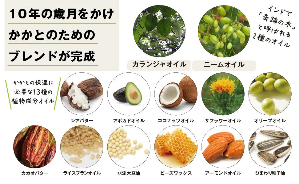 「LYKKE クラックドヒールバーム」は、10年以上の研究開発を経て誕生しました。このバームは、厳選された植物オイルをブレンドし、高い保湿効果を実現。以下の特徴があります。