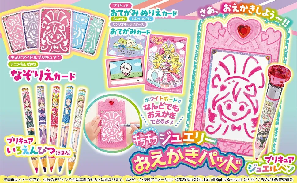 まず注目したいのが、色とりどりのキラキラジュエリーが施された『ジュエルおえかきパッド』です。このパッドは、子どもたちが思い思いに描くことができる楽しいアイテム。さらに、特別な『プリキュアジュエルペン』や、『プリキュアいろえんぴつ』も付いてくるため、色使いやアイデアがますます広がります。