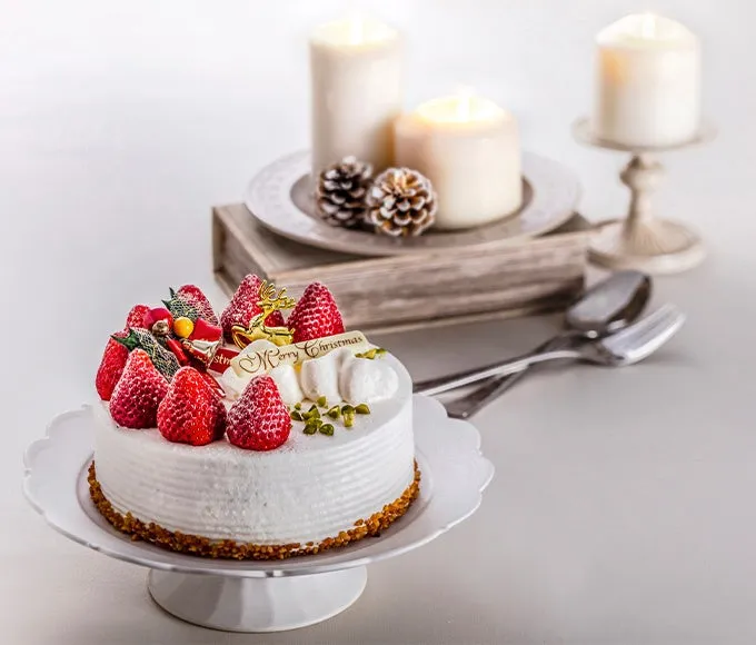 ふんわりしたスポンジにストロベリーをサンドし、上品なクリームで仕立てられた一品です。見た目も味わいも、クリスマス気分を盛り上げます。