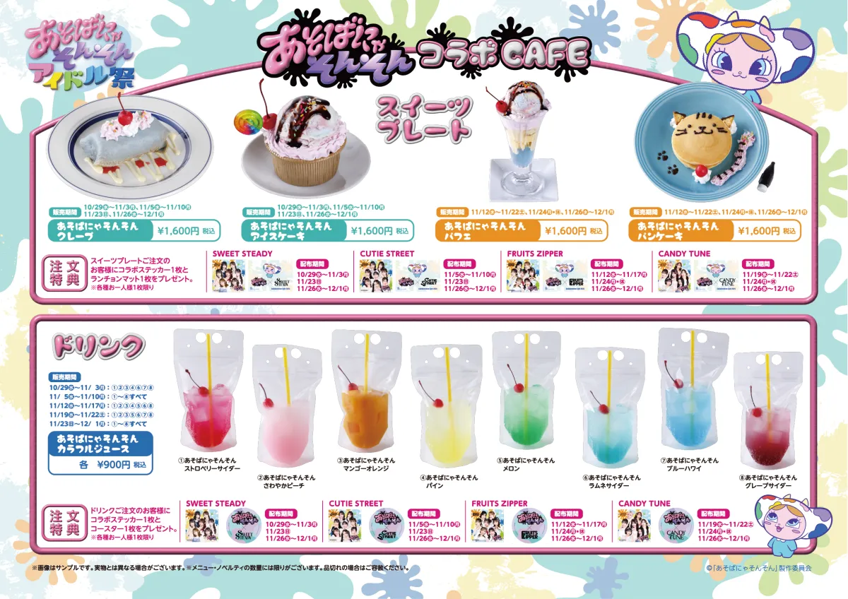 このコラボCAFEは、2015年10月29日(水)から12月1日(水)までの期間限定でオープンします。営業時間は11:00から19:00までですが、火曜日は定休。特に11月23日と24日には、「あそばにゃそんそん アイドル祭」が開催され、イベントに併せてぜひカフェにも立ち寄りたいものです。是非、訪れる際は、事前に営業時間を確認してください。