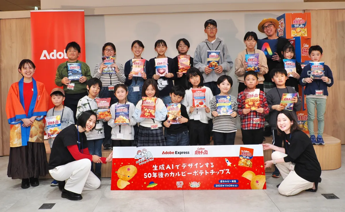 2025年、カルビーのポテトチップスは50周年を迎え、新たなイベントが開催されました。カルビーとアドビがタッグを組み、親子で参加できるワークショップ『“子どもと一緒にタイムトラベル!”生成AIでデザインする50年後のカルビーポテトチップス』が実施されました。会場は東京都千代田区のカルビー本社で、約40名の小学生とその保護者が参加しました。