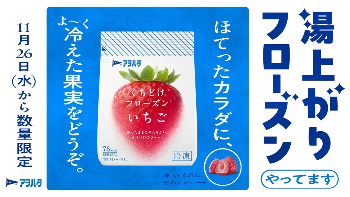 11月26日は「いい風呂の日」。今年もアヲハタ株式会社が、全国18箇所の銭湯や温浴施設で特別なイベントを開催します。この日は、"凍ったままでやわらかい"冷凍フルーツ「アヲハタ くちどけフローズン」をお風呂上がりに楽しむことができます。