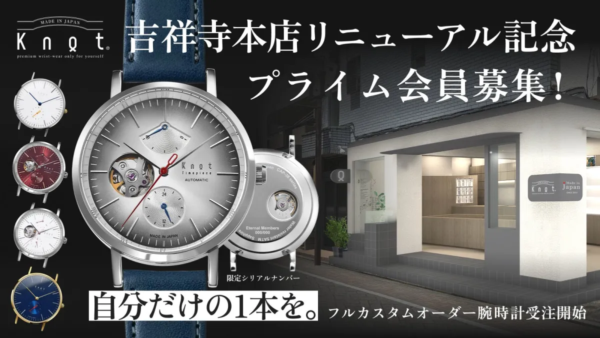 Maker’s Watch Knotは、2025年11月15日(土)に吉祥寺本店の移転を記念して特別な「プライム会員」を募集します。このプログラムでは、腕時計を自由にカスタマイズできる「フルカスタムオーダー」時計や、豊富なバリエーションから選べるストラップが利用可能です。最大300名様を対象にしたこの特別な会員制度は、支援を受ける形の「応援購入」で提供されます。さらに、全国の直営店で利用できる会員権も付帯しています。