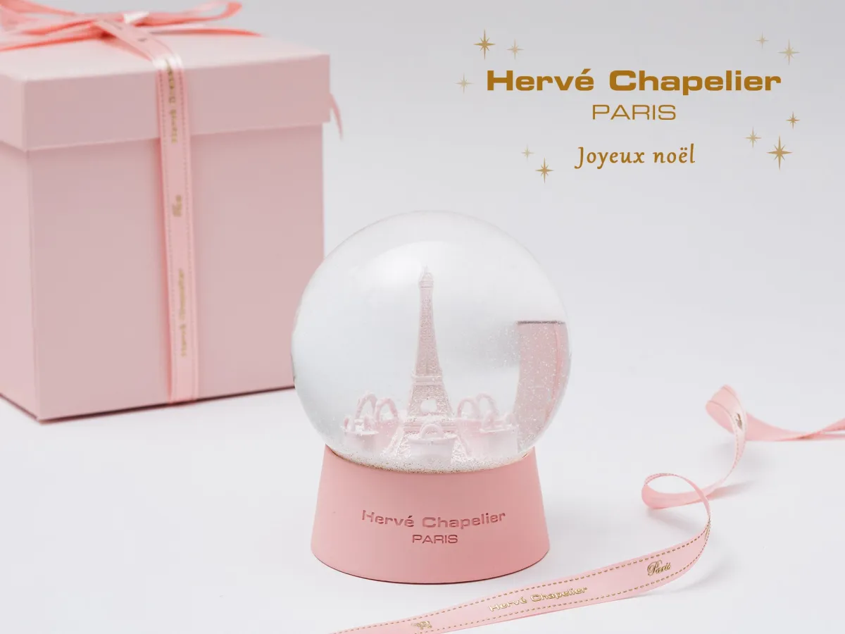 今回のスノードームは、2025年のクリスマスのテーマカラーであるピンクを基調としたデザインです。パリのシンボル、エッフェル塔の周囲にエルベシャプリエの象徴である舟型トートが並んでいる姿はとても可愛らしく、見る者を幻想的な世界へと誘います。土台も美しいピンクで仕上げられ、細部にわたってこだわりが詰まっています。このスノードームで、パリの雪舞う街並みを楽しむことができます。数量限定のため、早めの来店をおすすめします。