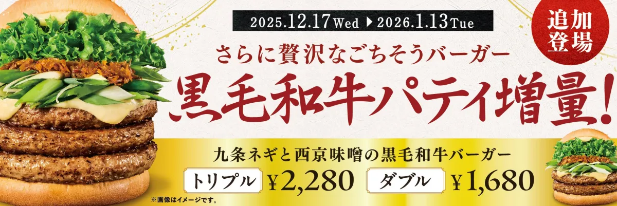 フレッシュネスバーガーから、京都の伝統食材を用いた「九条ネギと西京味噌の黒毛和牛バーガー」がリリースされており、この度新たに「ダブル」と「トリプル」が期間限定で登場します。これは、寒い季節にぴったりな濃厚な味わいを求めるファンの声に応えたものです。年末の特別な時期に、一味違った至福のハンバーガーを楽しむ絶好のチャンスとなっています。