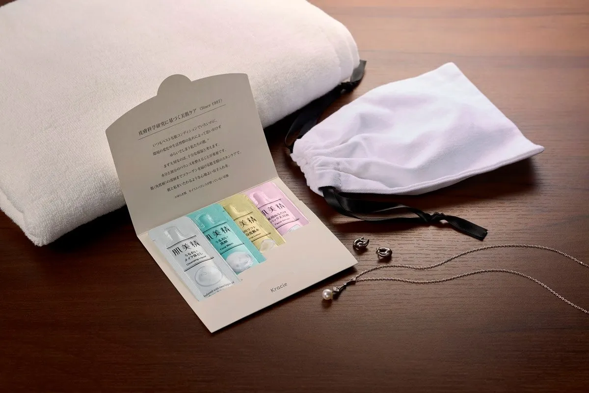 肌美精の新しいアメニティで、宿泊施設での体験をさらに上質なものにしてみませんか?肌をいたわるスキンケアアイテムで、透明感あふれる美肌を手に入れるチャンスです。