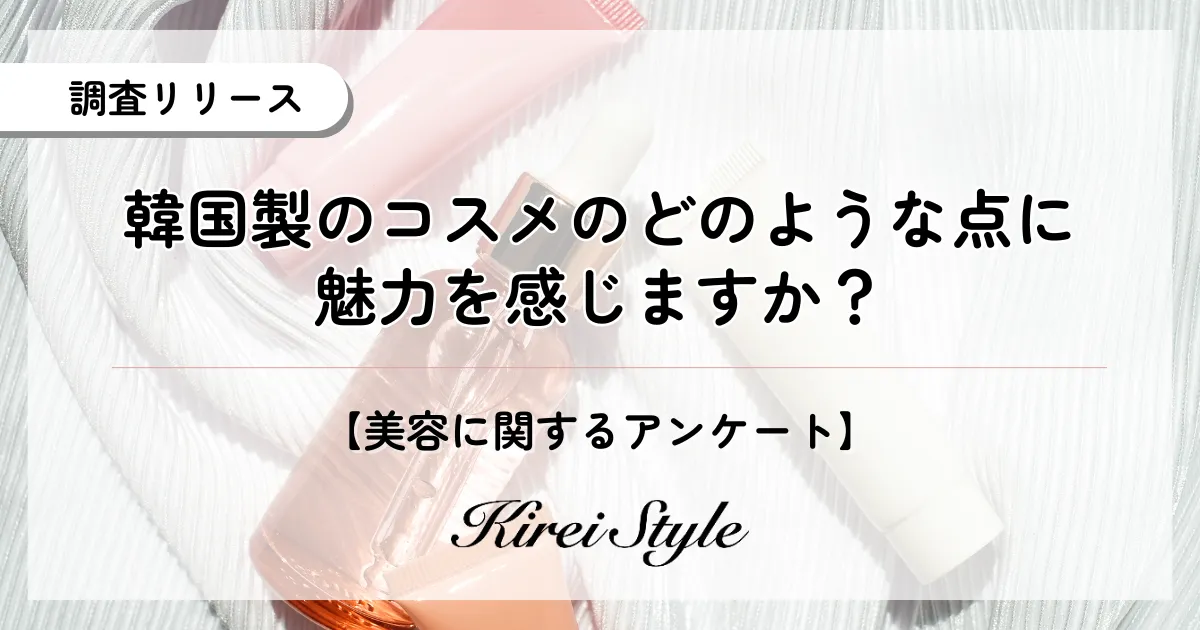 近年、韓国コスメの人気が急上昇しています。全国の女性2,000人に「韓国製のコスメにどのような点に魅力を感じますか?」というアンケートを実施した結果、その魅力や評価は意外にも二極化していることが明らかになりました。この調査は、「今のキレイも、10年後の輝きも」をコンセプトに掲げる美容情報サイト『Kirei Style』が行ったものです。