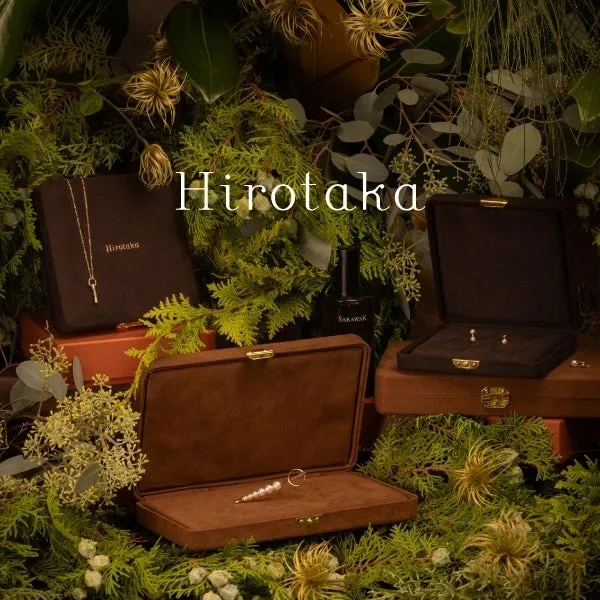 Hirotakaは、ニューヨークのトランクショーからスタートした若いブランドです。そのデザインのインスピレーションは、東洋と西洋の美が交差する地点で得たものや、熱帯の森で見られる動植物の美しさから来ています。クリエイティブディレクターの井上寛崇氏は、ミニマルでありながらアートとしての存在感を持つジュエリーを追求しており、2025年にはブランド設立15周年を迎えます。