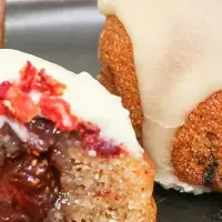 このパフェは、華やかで可愛らしい庭園をイメージして作られています。トッピングにはバラの形にしたりんごが使われ、甘酸っぱいラズベリーアイスとクリーミーなバニラアイスが絶妙に組み合わさった一品です。